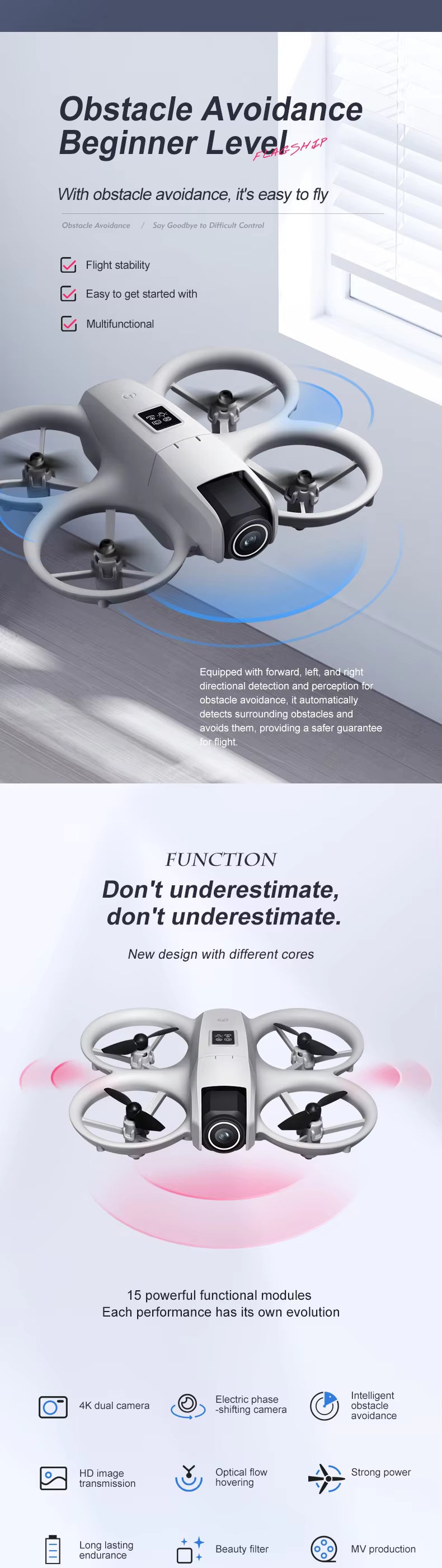 You get a lot for the price — dual camera, obstacle avoidance, and folding design. It’s compact, easy to carry, and feels premium