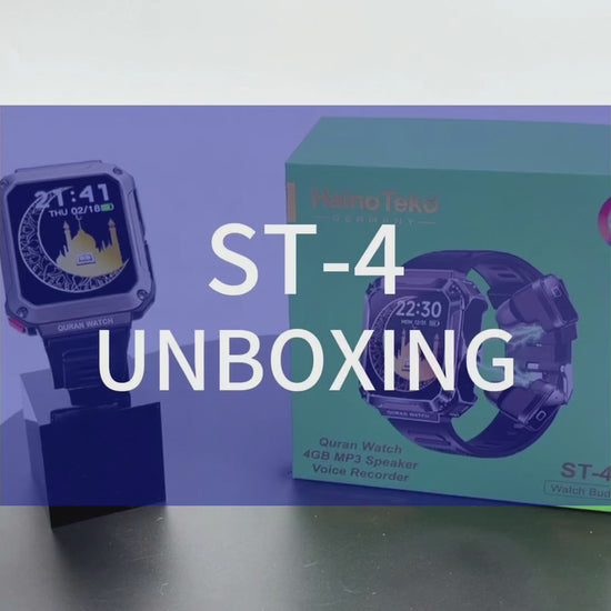 Experience spiritual connection and smart technology with the Haino Teko ST-4 Quran Smart Watch featuring 4GB storage, built-in MP3 speaker, voice recorder, and modern design — crafted for both daily use and faith enrichment.