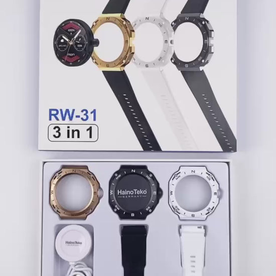 Discover the Germany RW31 Smart Watch featuring a 3-in-1 triple case design, Bluetooth connectivity, waterproof protection, and advanced fitness tracking — built for both men and women with style and precision.