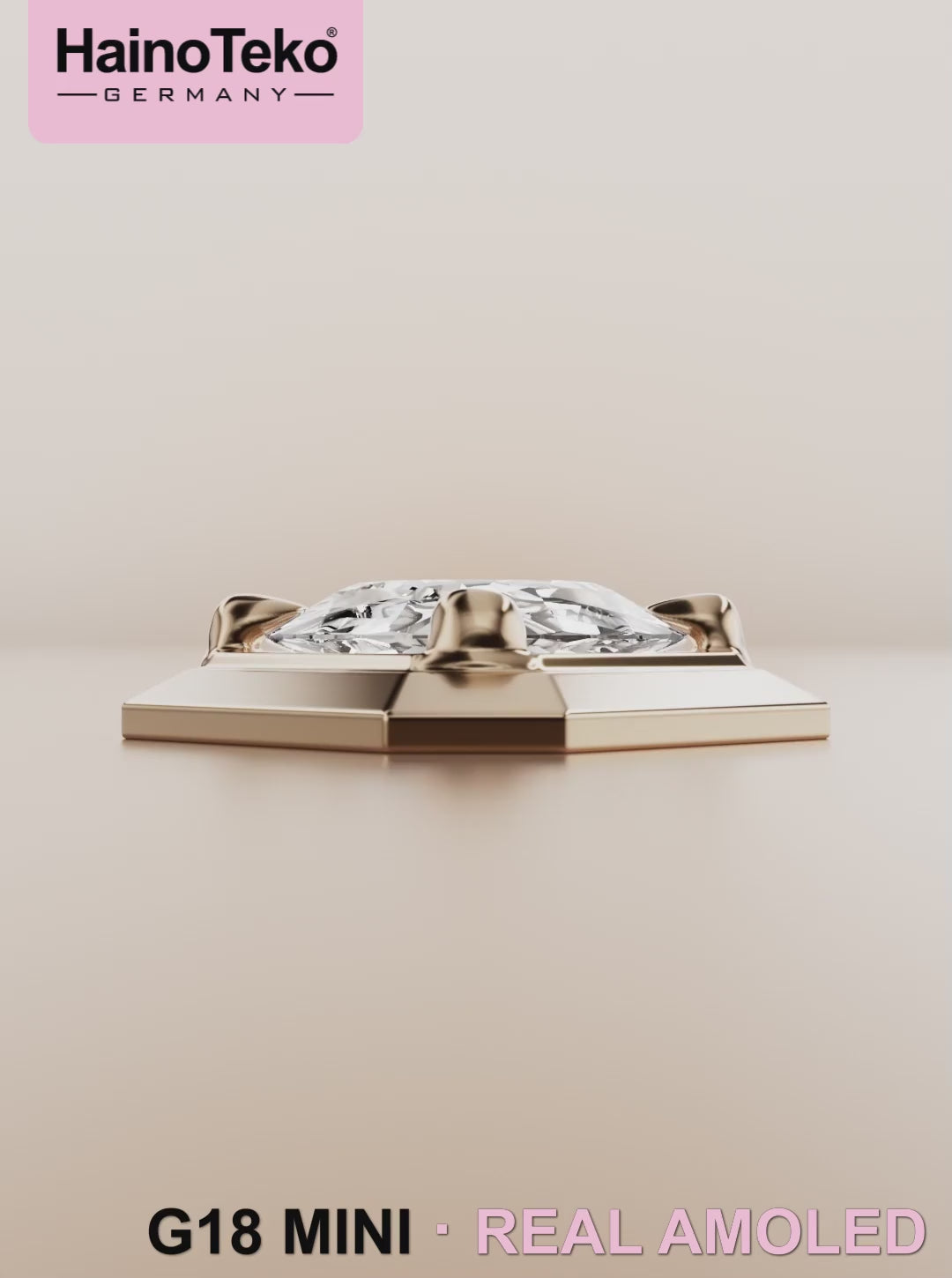 Experience elegance and innovation with the Haino Teko G18 Mini Smart Watch for women, featuring a real AMOLED display, premium design, Bluetooth connectivity, and 3 stylish straps for every occasion.